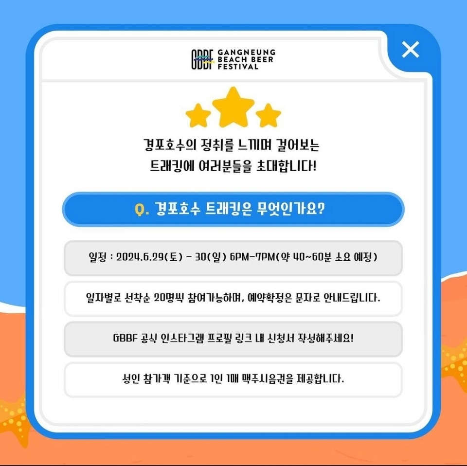 - 2024 GBBF와 함께 경포호수의 정취를 느끼며 걸어보는 트레킹에 여러분을 초대합니다.