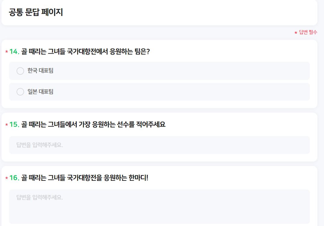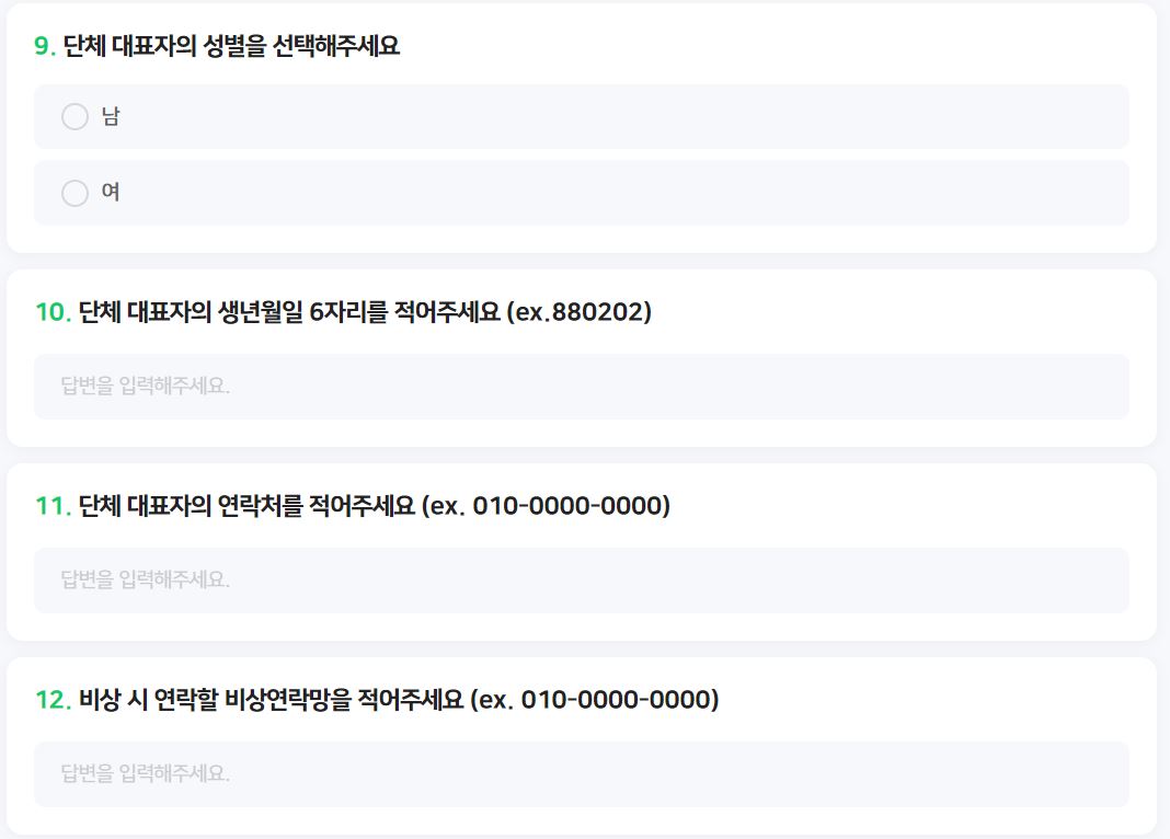 - 개인 또는 단체 신청 페이지를 작성 한 후 공통 문답을 작성하고