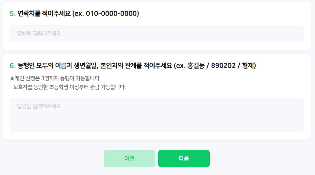 - 반드시 함께 오실 분의 정보를 적어주세요