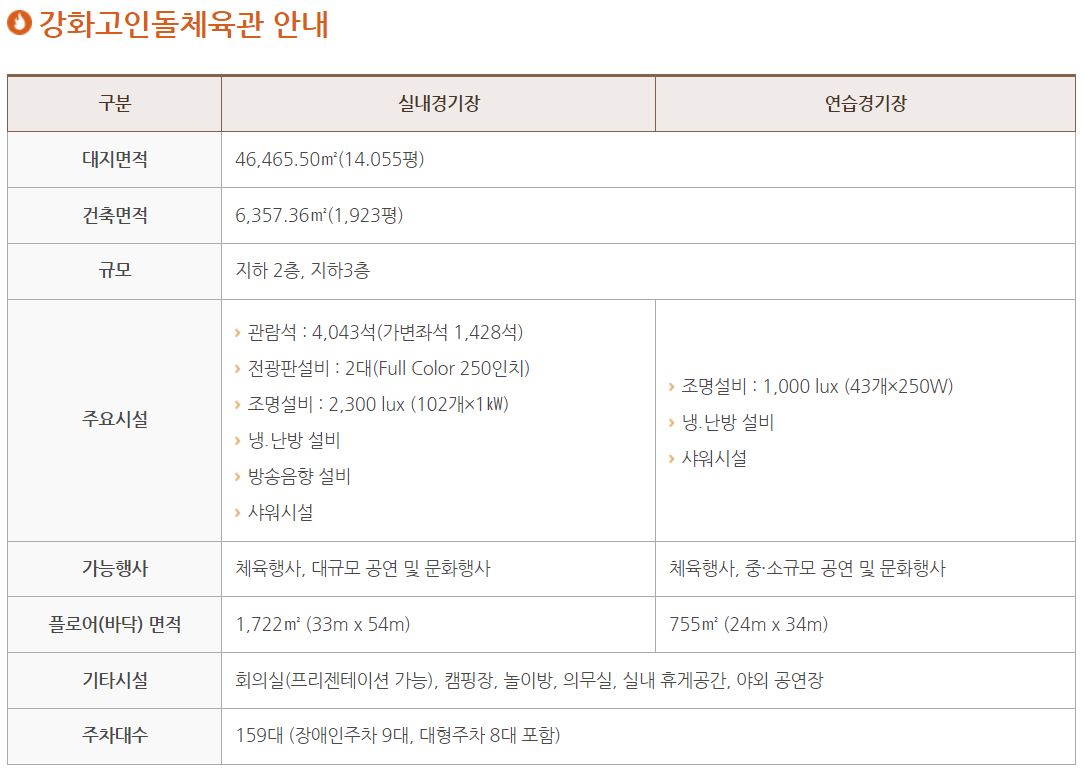 ※ 강화 고인돌 체육관 안내 바로가기 ☞ 인천광역시 시설관리공단