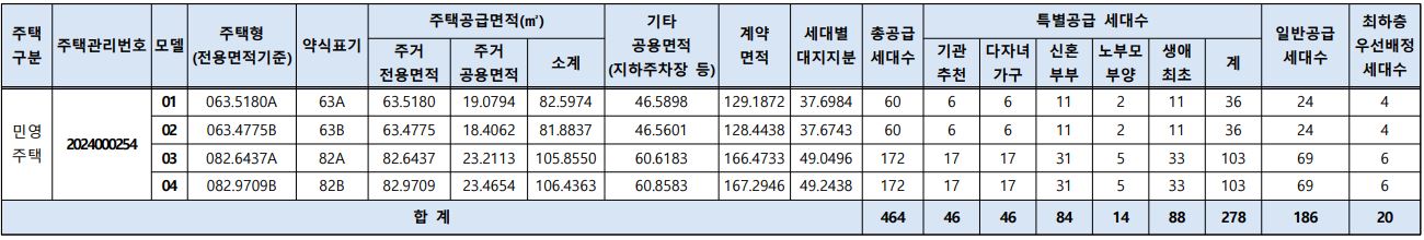 | 세대수 | 공동주택 - 464세대 오피스텔 - 88세대 |
