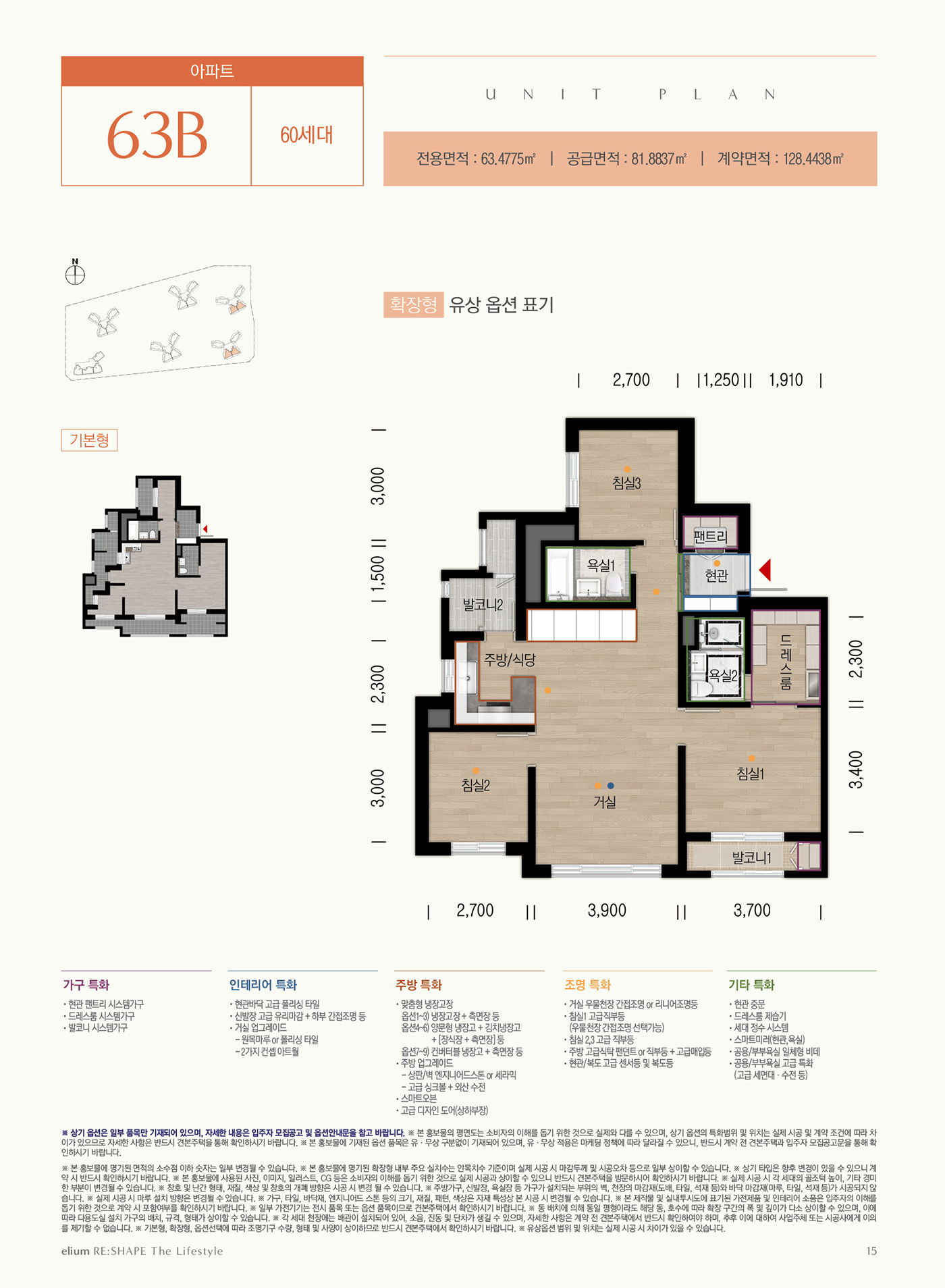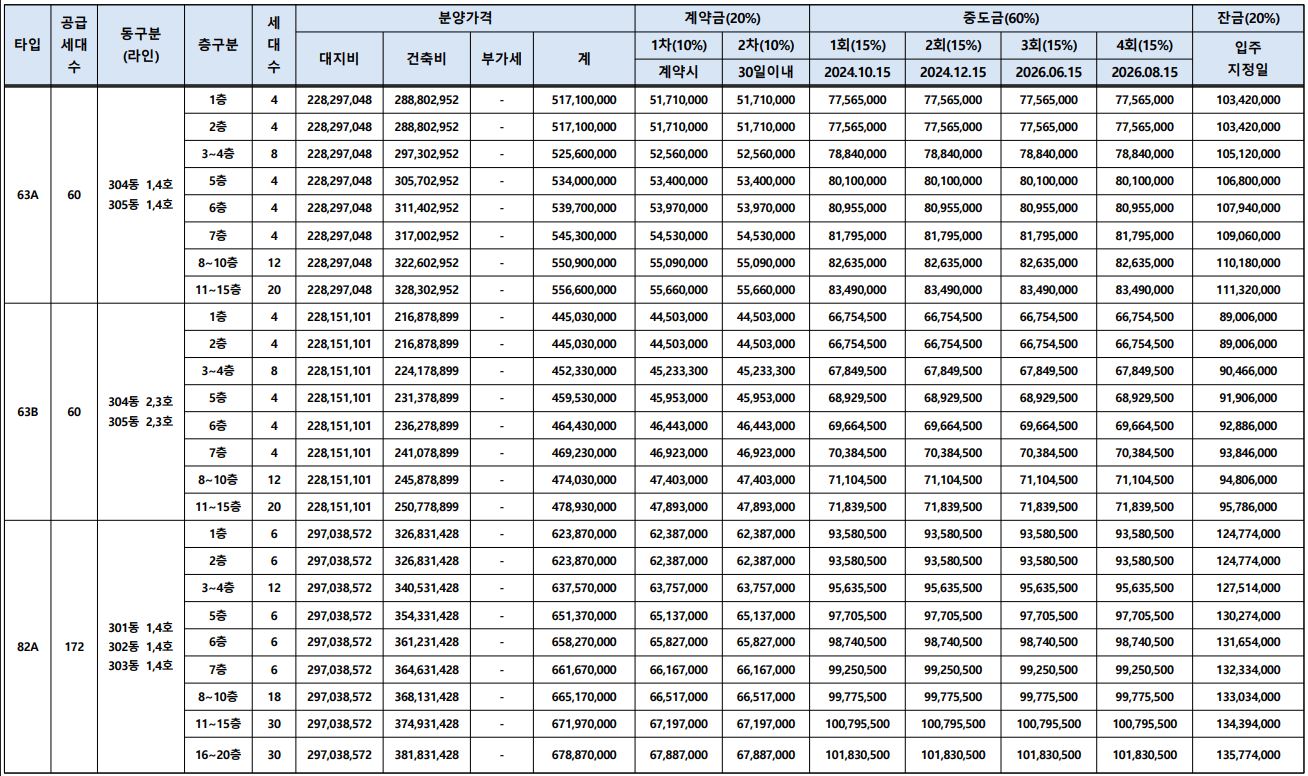 | 타입 | 공동주택 - 63A, 63B, 82A, 82B 오피스텔 - 85OA, 85OB, 86OA |