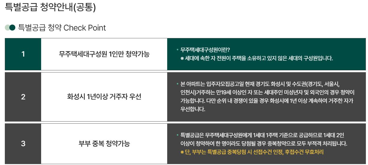※「주택공급에 관한 규칙」제4조 제4항에 의거 10년 이상 장기복무 중인 군인은 해당주택건설지역인 화성시 외 지역에 거주하여도 해당지역 거주자로 인정되며 본 주택의 해당순위(1순위 및 2순위) 입주자 저축 요건을 충족 시 청약 가능합니다.