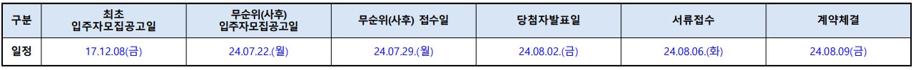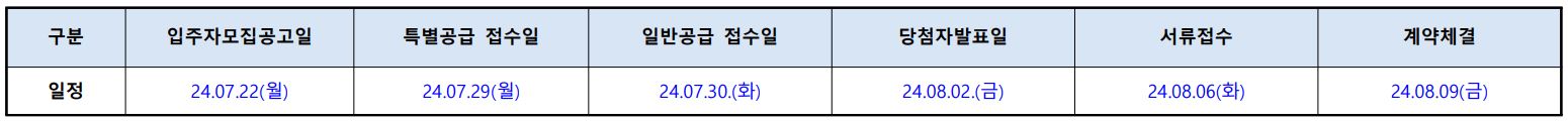 - 특별공급 : 7월 29일 (당해) / 일반공급 : 7월 30일 (당해)