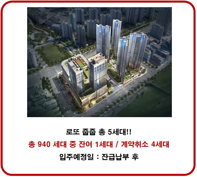 - 총 940세대 중 잔여 1세대 / 계약취소 4세대