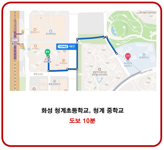- 화성 청계 초등학교, 청계중학교 도보 10분(네이버 지도 기준)