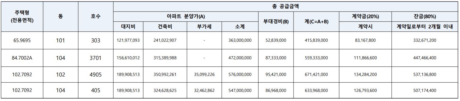 - 신혼부부특별공급( 65 / 1세대) 4.15억 원