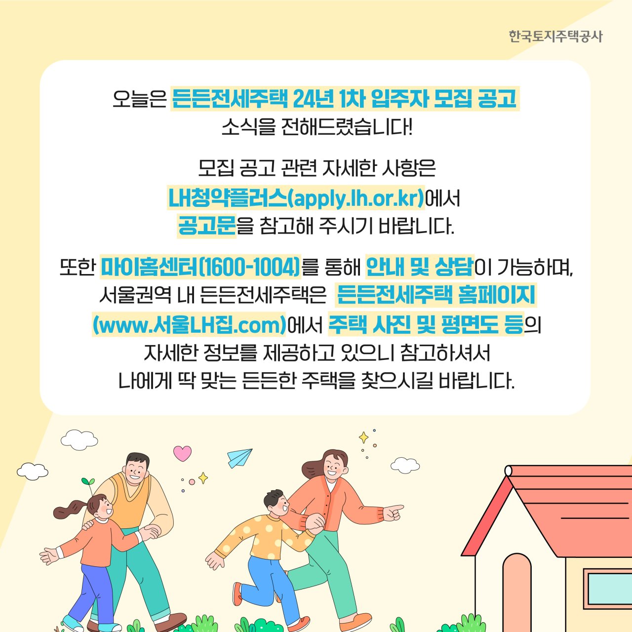 한국토지주택공사의 한눈에 알아보는 든든전세주택 모집공고