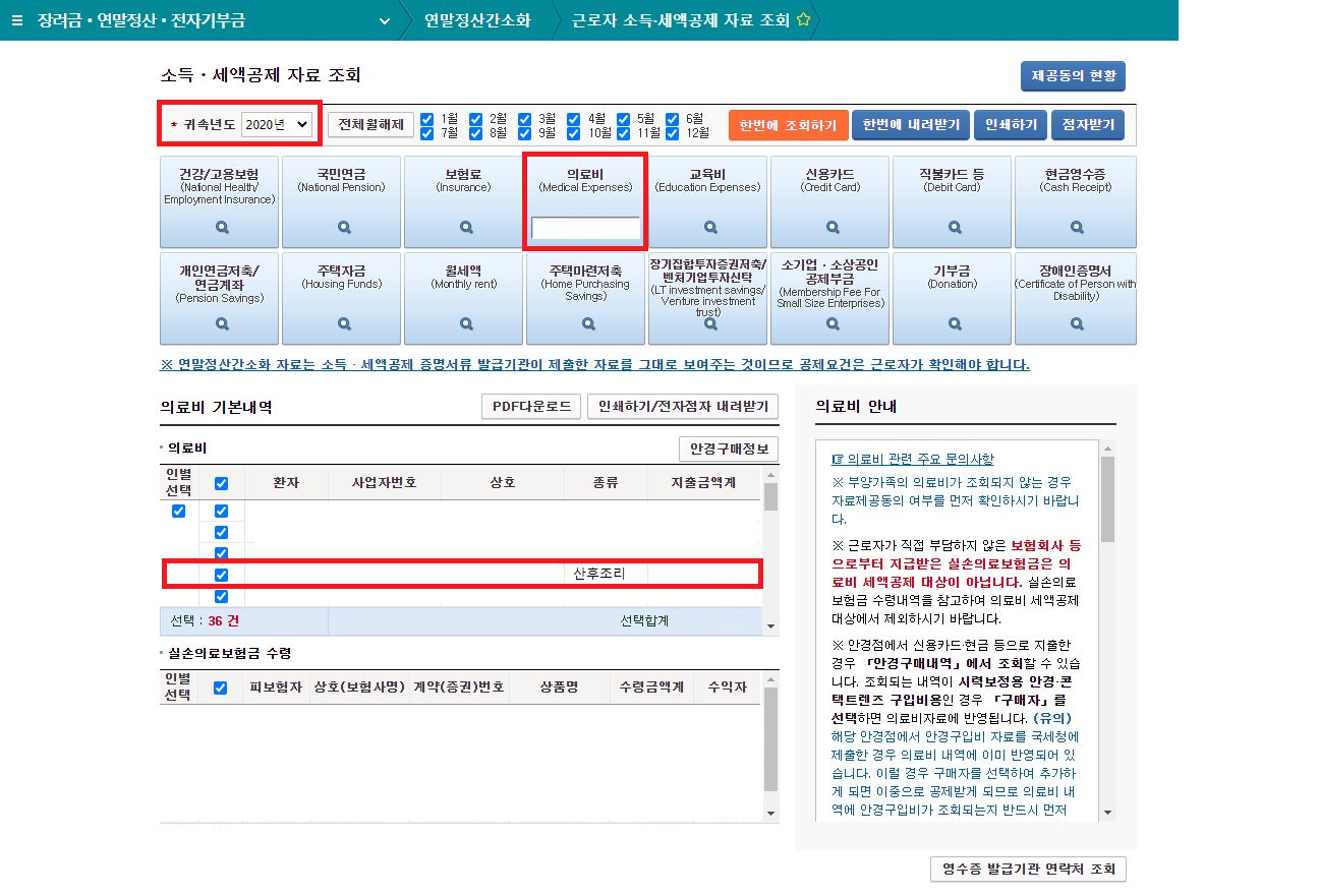 - 19년도 산후조리원을 이용했다면, 20년도 연말정산 확인 - 의료비 선택