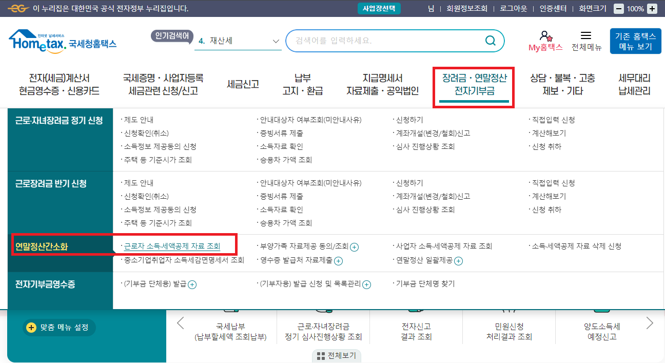 - 근로자 소득 · 세액공제 자료 조회 선택
