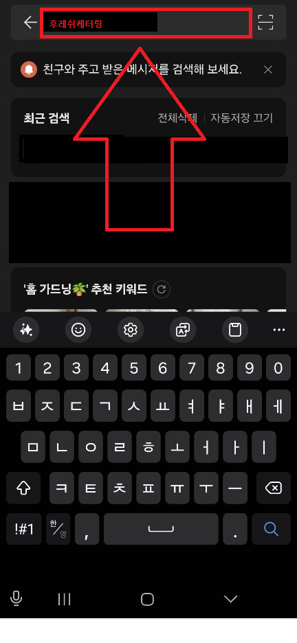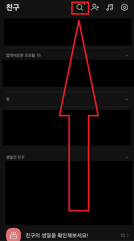 친구 또는 채팅 탭의 상단 검색