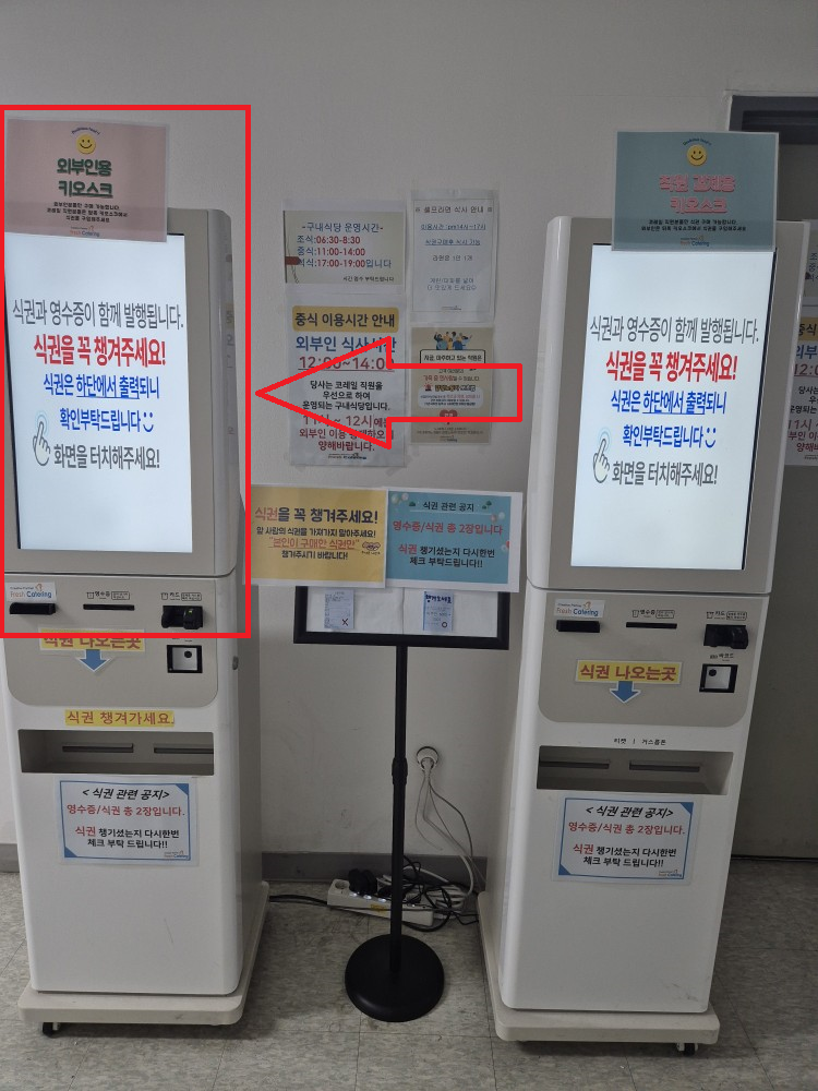 왼쪽의 외부인 키오스크를 사용하면 됩니다.