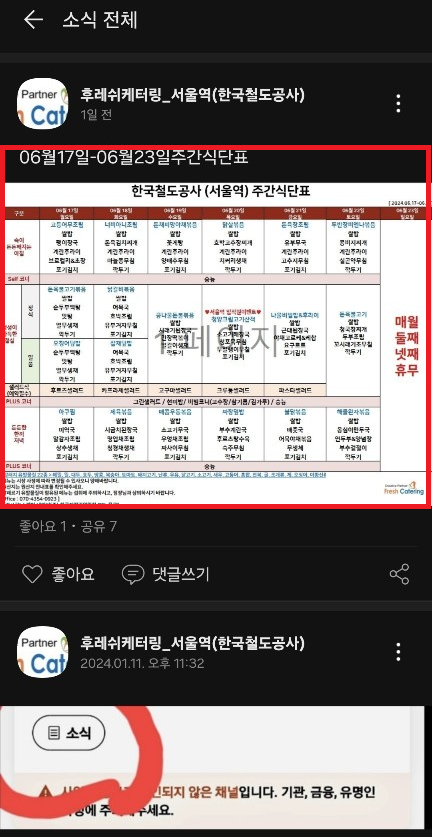 서울역 구내식당 주간 식단표는 주차별로 제공되며,후레쉬케터링 카카오톡 채널에서도 확인 가능합니다. 서울역 구내식당 6월 17일~ 23일 식단표 메뉴후레쉬케터링_서울역(한국철도공사)후레쉬