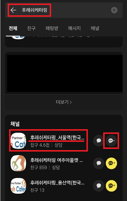 채널탭에 '후레쉬케터링_서울역(한국철도공사)' 확인