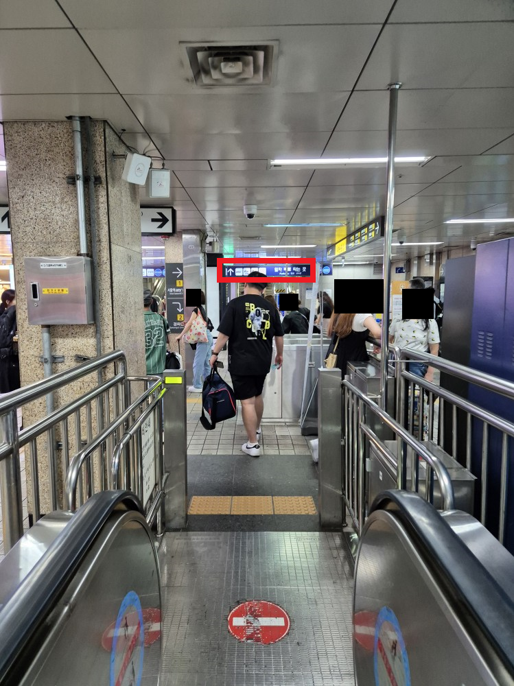 좌측으로 다른 승강장으로 갈 수 있는 에스컬레이터에 탑승합니다.