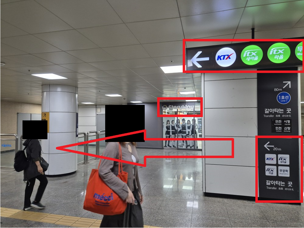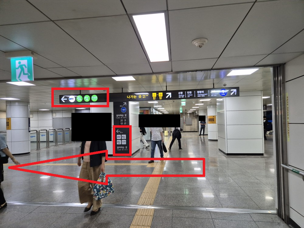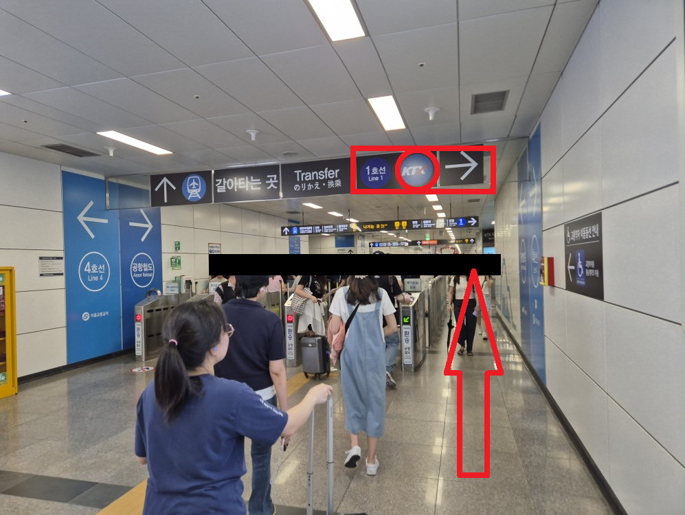 개찰구 오른쪽 KTX·1호선 방면으로 직진