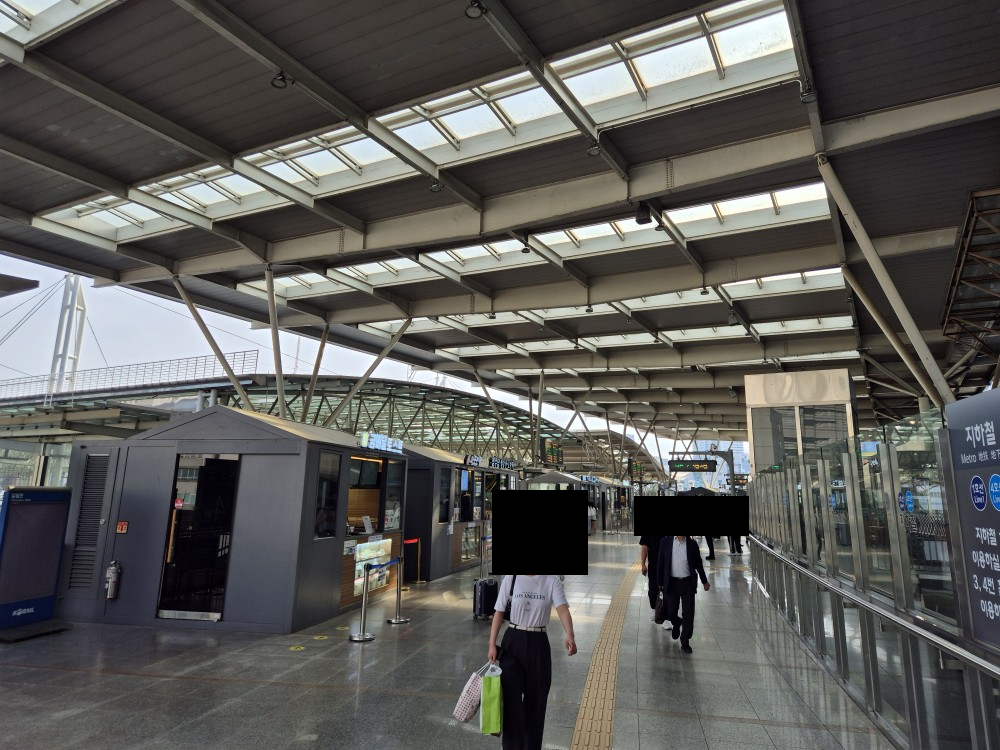 에스컬레이터 하차 후 공항철도 진입 개찰구 진입 X