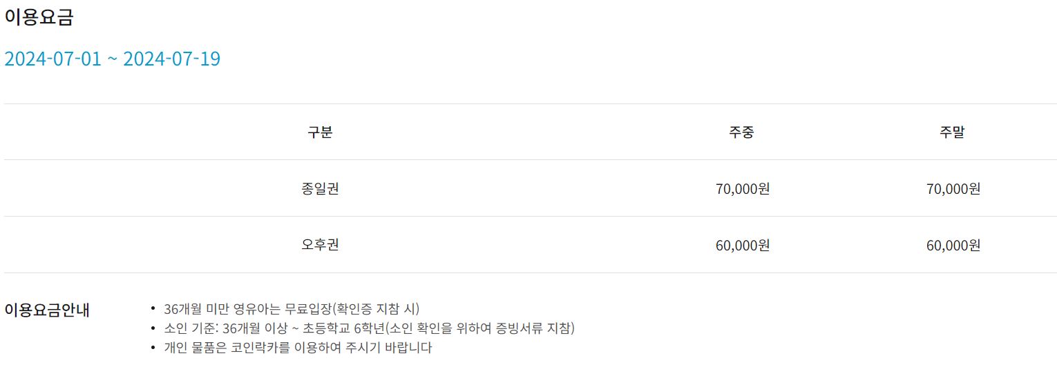 - 13개월 미만은 증빙서류 제출 시 무료입장 가능합니다. (가족관계증명서, 등본, 아기수첩 등)