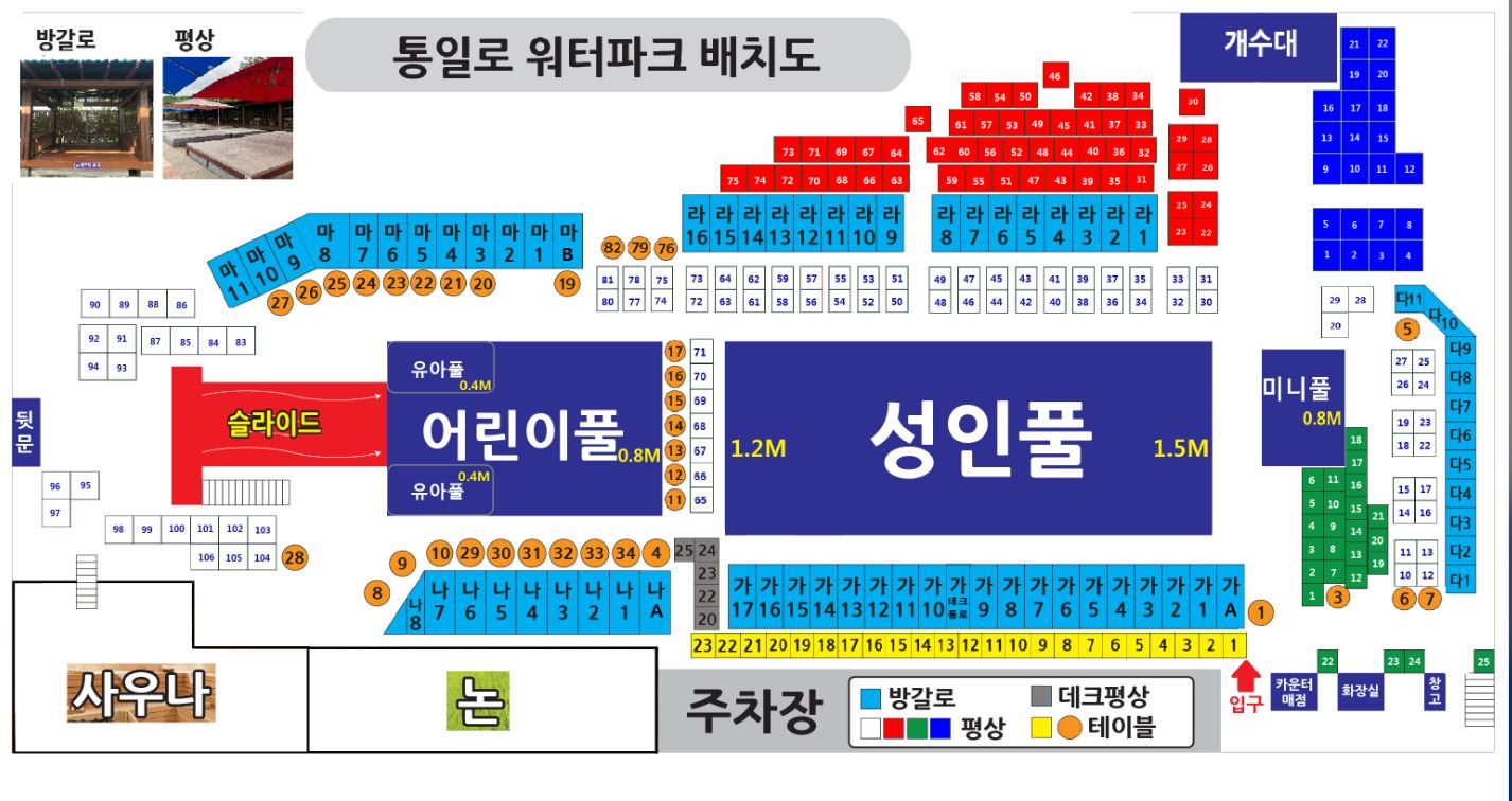 - 워터파크 매표는 입장 오픈/입장 마감 한 시간 전까지만 가능합니다.