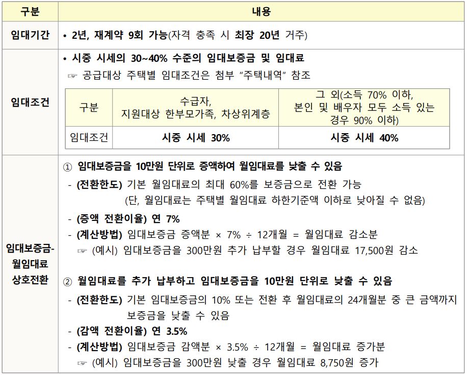 - 주택군, 주택별 소재지, 면적, 임대조건 등 세부내역은 본 공고문과 함께 첨부된 “주택내역” 참조