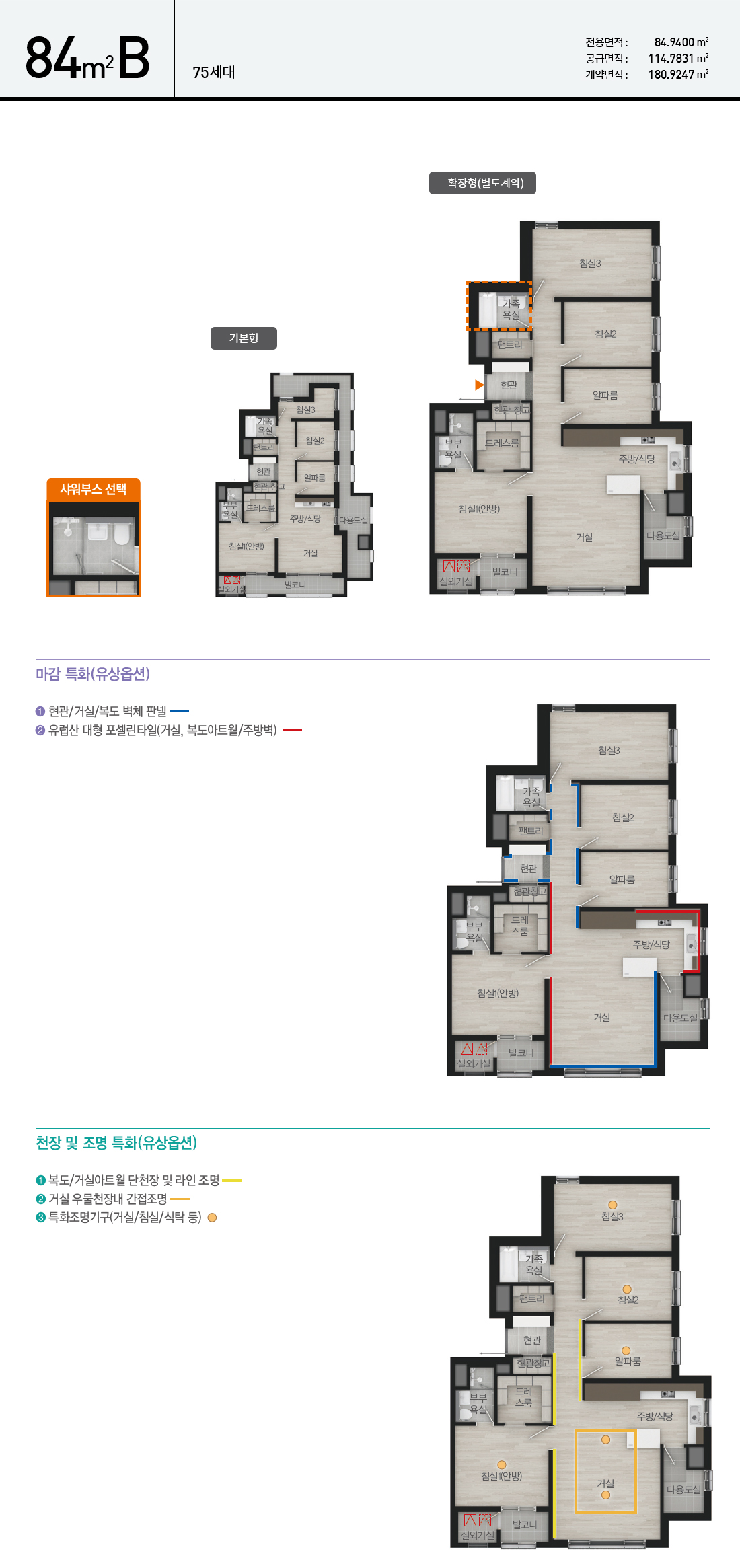 - 계약 당시 선택되었던 발코니 확장 및 추가선택품목 옵션에 따라 이미 준공된 아파트입니다. 따라서 발코니 확장 및 추가선택품목 옵션을 모두 수락하는 조건으로만 공급계약 체결이 가능합니다.