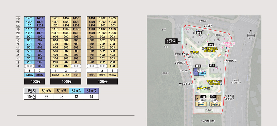 - 총 130세대 중 잔여 1세대 ( 84㎡ ) , 아파트 지하 2층, 지상 14층 3개 동