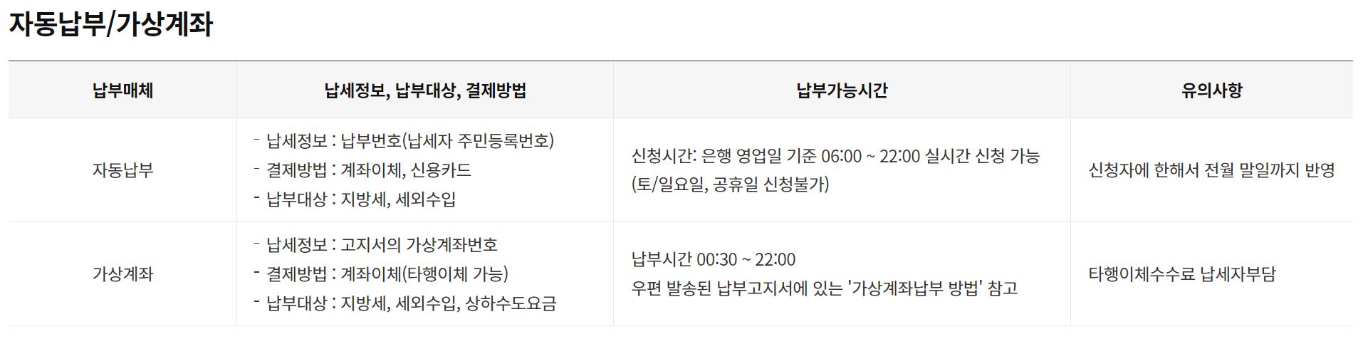 - 인터넷 지로(금결원), 위택스(행안부), 통해 납부 가능