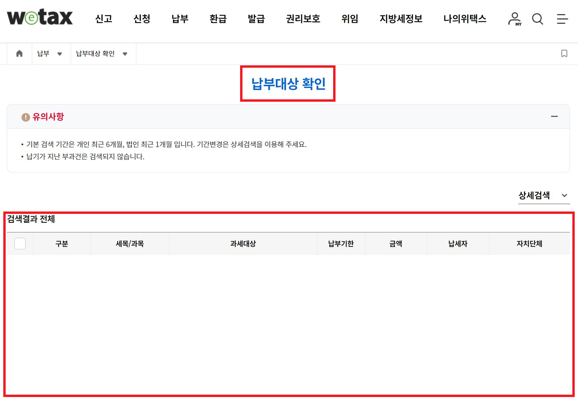- 납부대상확인 페이지에서 납부할 건을 선택