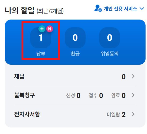 - 로그인 후 우측 나의 할 일 아래 납부 선택