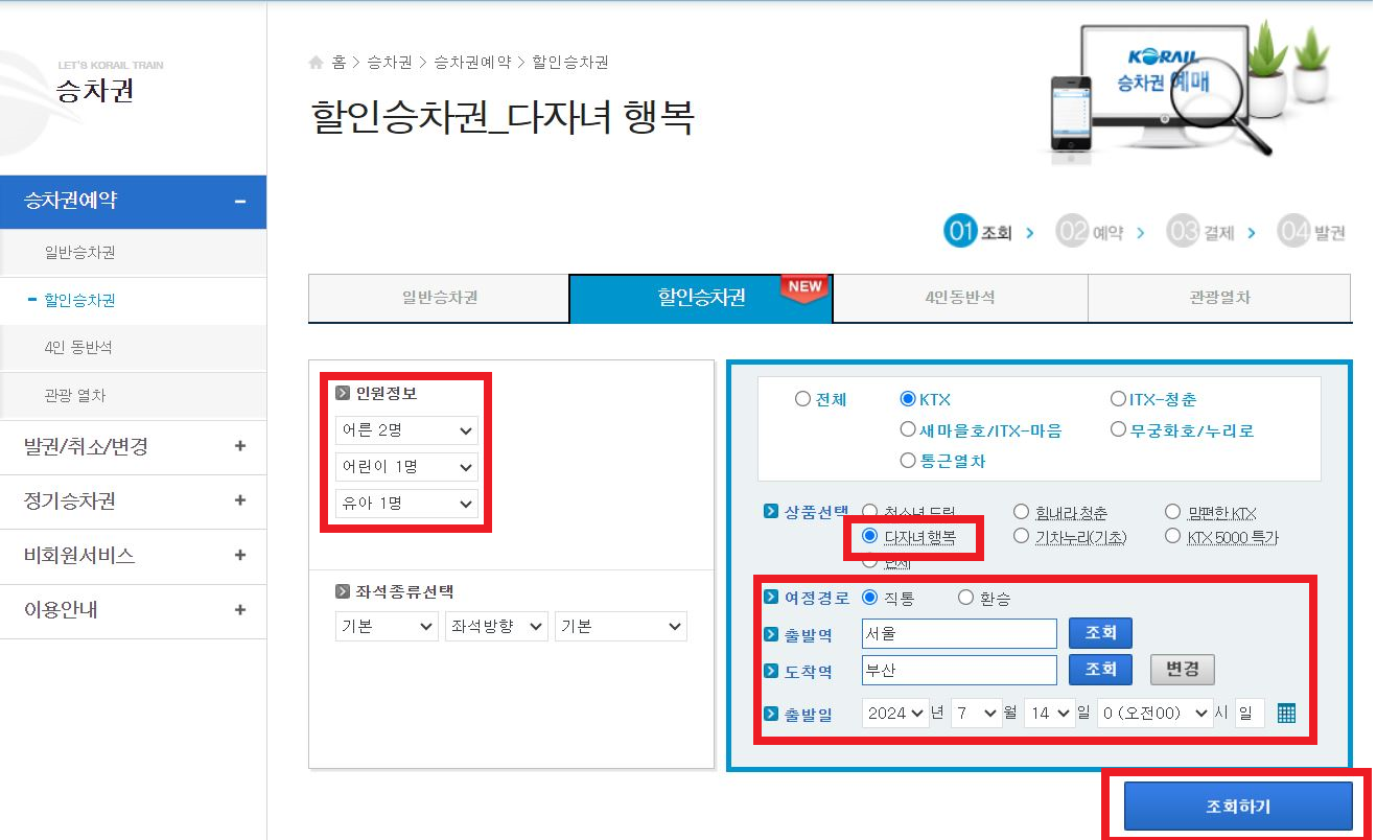 - 코레일 홈페이지 접속 후 다자녀 행복 선택