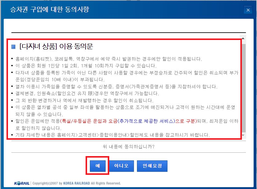 7. [다자녀 상품] 이용 동의문 확인 후 동의 시 예 선택